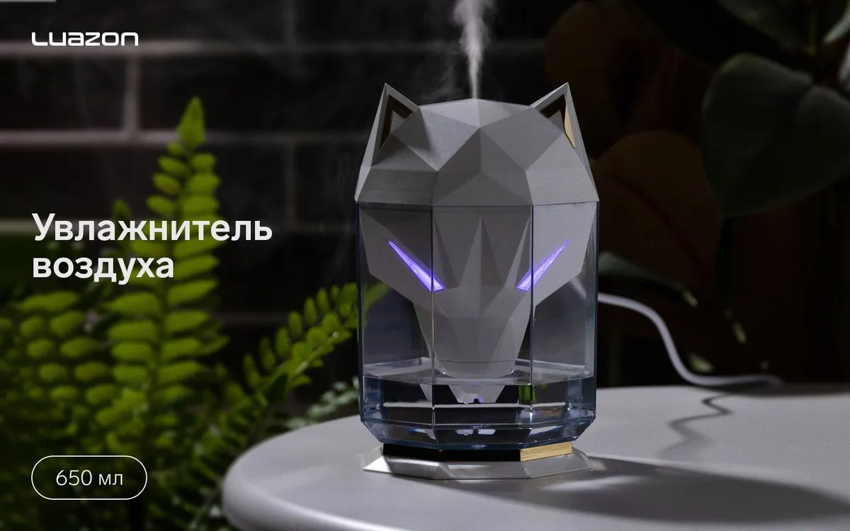 Зволожувач повітря й аромадифузор Вовк 3D дизайн, з підсвіткою очей, 650 мл